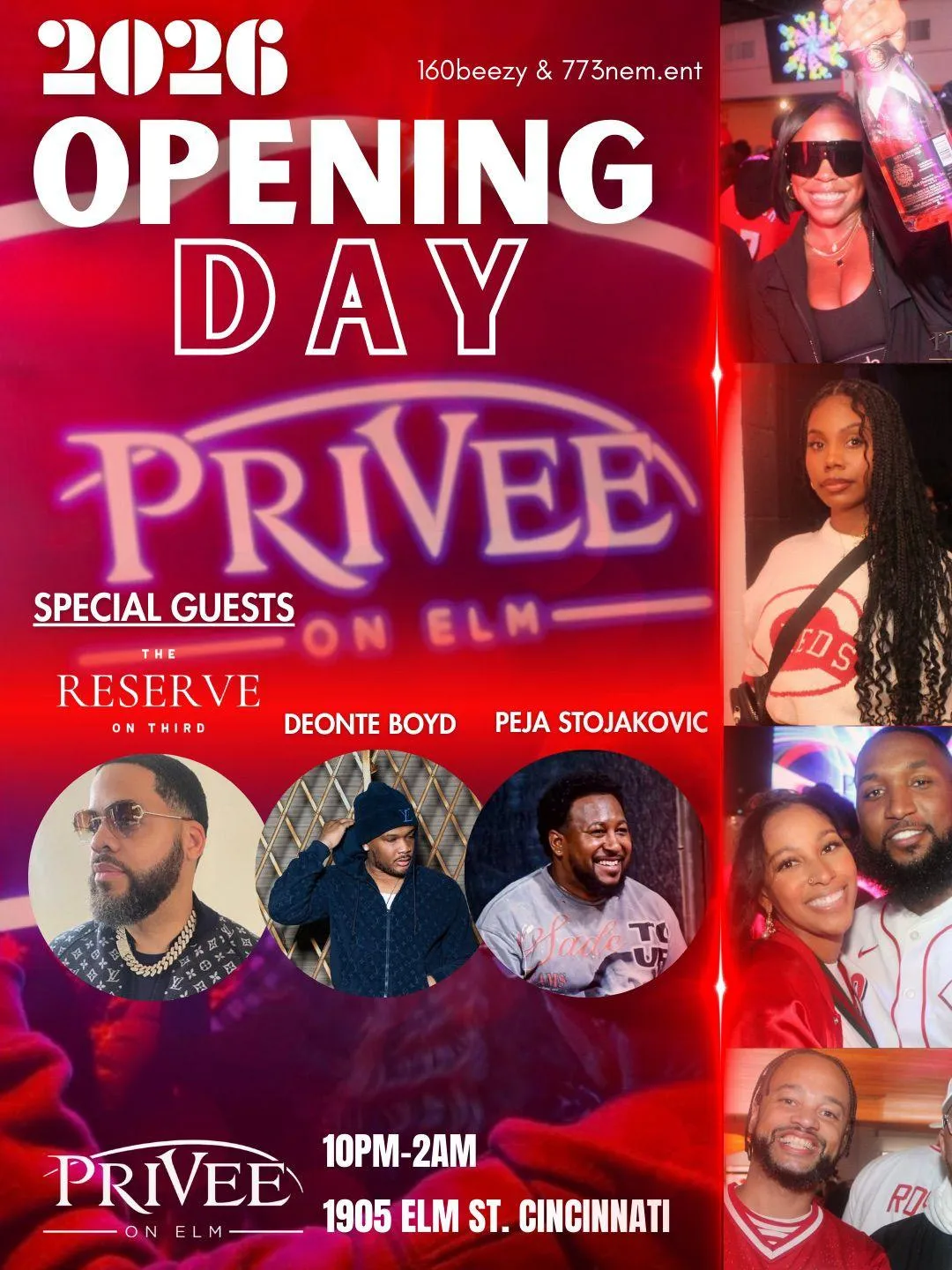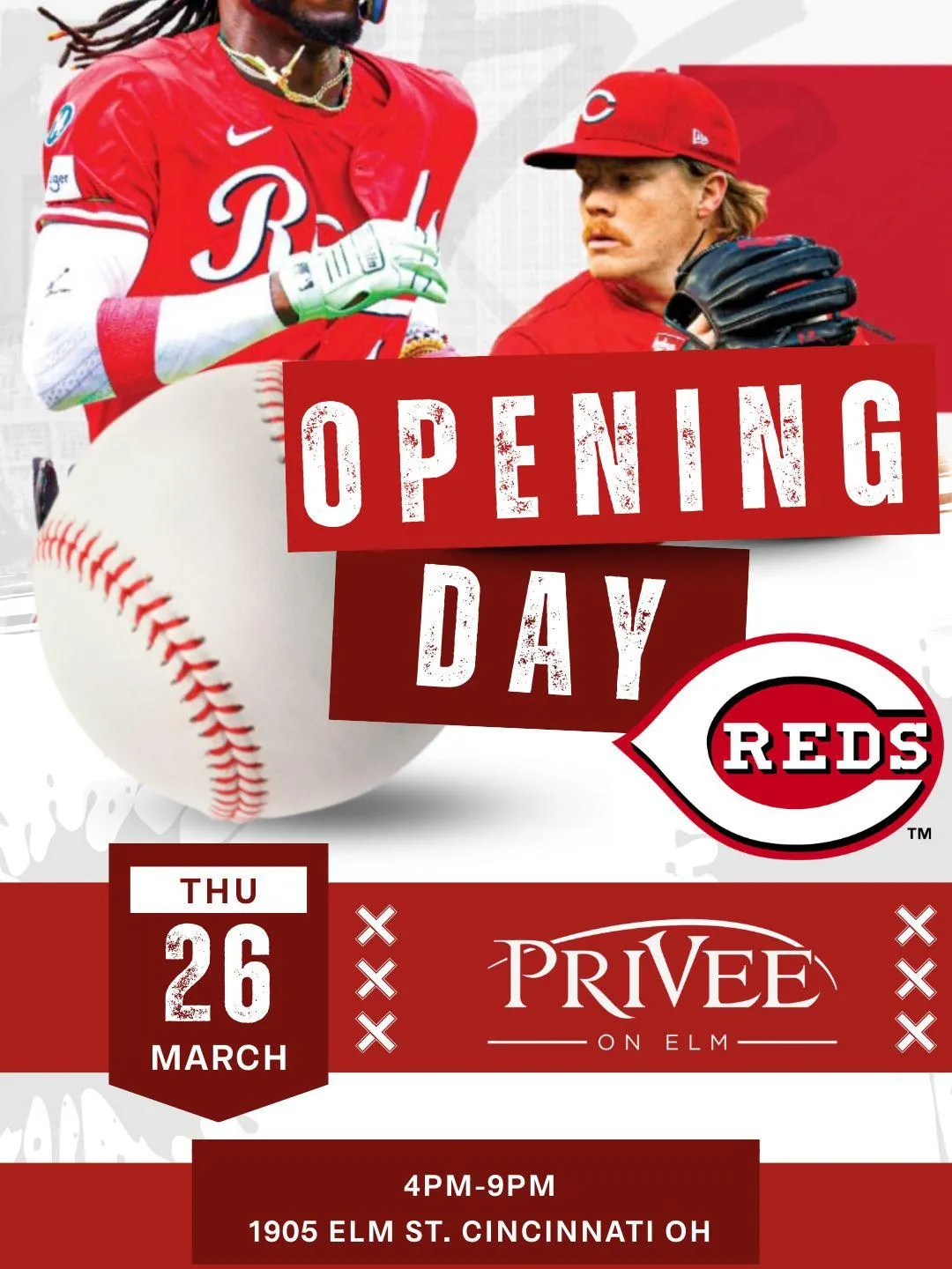 Celebrate Opening Day the right way with the Reds at Privee on Elm! Join us on Thursday, March 26th for an exciting game-day experience filled with energy, drinks, and great vibes. From 4PM to 9PM, come through to 1905 Elm St., Cincinnati, OH and be part of the action as the season kicks off. Bring your crew, rep your team, and enjoy the perfect spot to watch, celebrate, and keep the Opening Day spirit going all evening. ⚾🔥